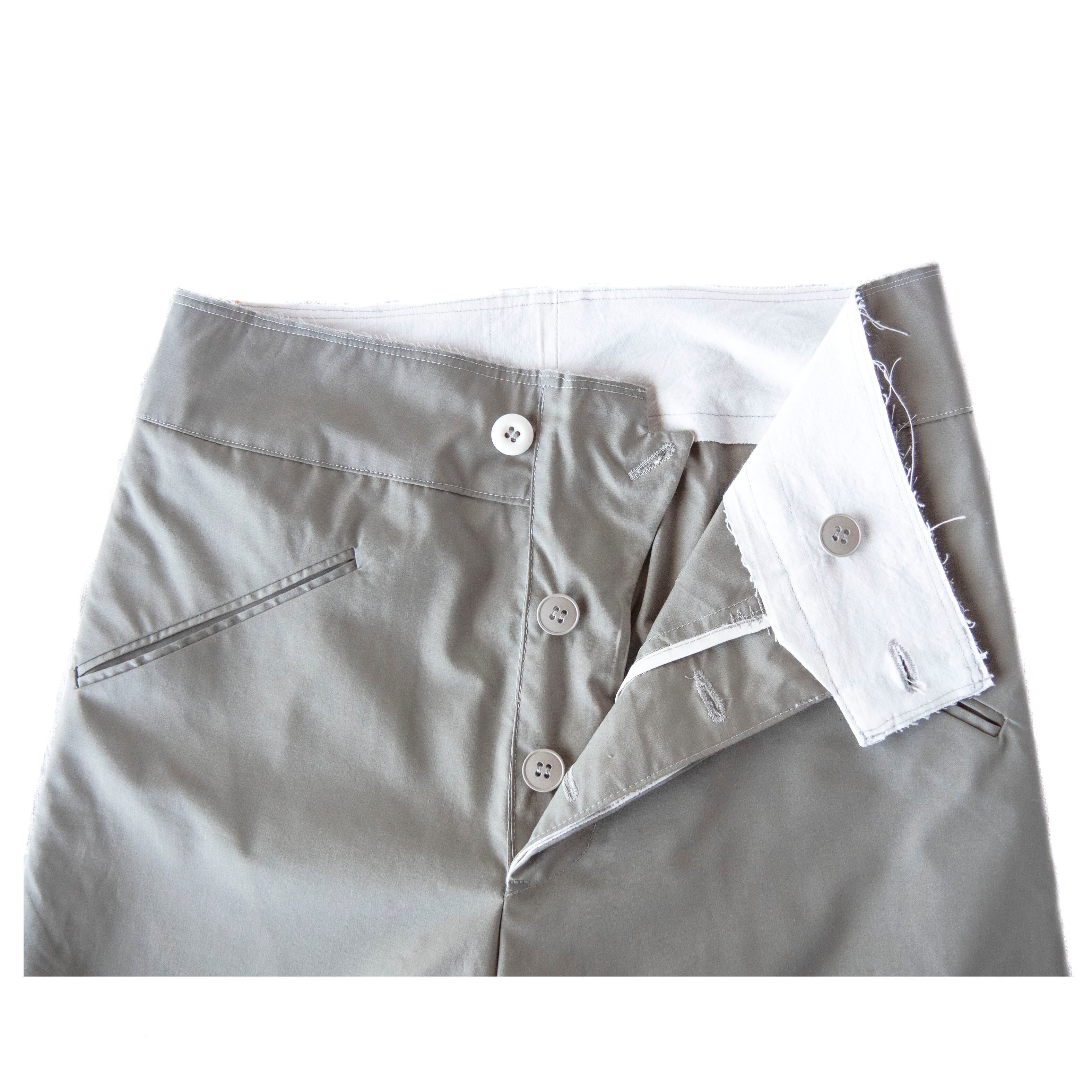 この商品は、脱構築ファッションの定義で作られた哲学的なアイテムです。ディテールの所々でローエッジ(切りっぱなし)の技法がデザインとして使われています。ご購入の際にはどうかご注意ください。着用していく先で、どうしてもほどけてくる生地の糸は、どうか丁寧に切りながらご使用くださいませ。ご理解とご協力をお願いします。