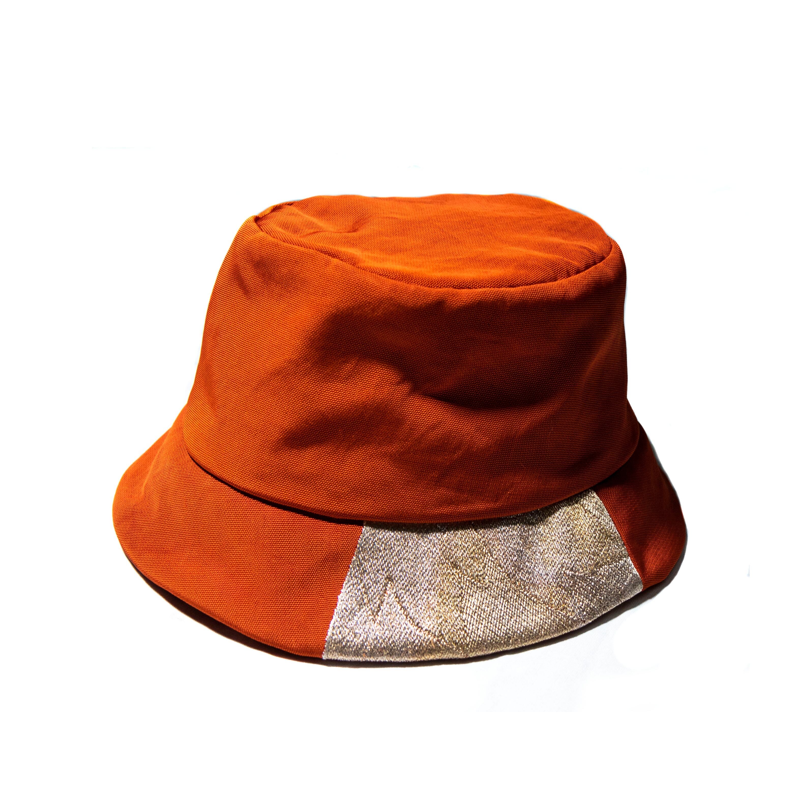 orange and gold silk antique obi bucket hat MZ original