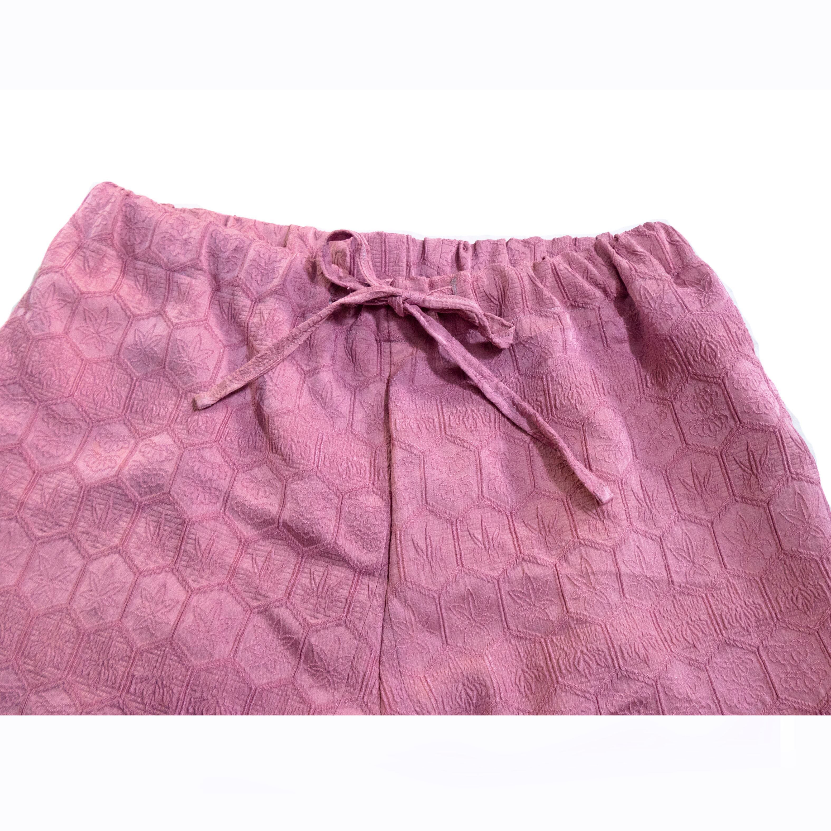 pink silk kimono remake SHORT trousers sizeM/L MOMOZONO original